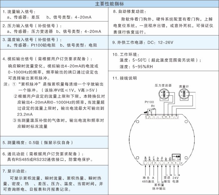 一體化數(shù)顯流量積算儀是專門用于配套畢巴托流量計(jì)的儀表,它直接安裝在現(xiàn)場(chǎng)差壓變送器的表頭內(nèi),按照國(guó)家機(jī)械行業(yè)標(biāo)準(zhǔn)《流量顯示儀表》(JB/T2274—91)和差壓式流量計(jì)的計(jì)算方法,采用了MSP430和12864圖形點(diǎn)陣液晶顯示器等成熟器件,通過現(xiàn)場(chǎng)取差壓﹑壓力和溫度信號(hào),將過去復(fù)雜的流量設(shè)定改造成了簡(jiǎn)便易懂的中文菜單式設(shè)定,特別是實(shí)現(xiàn)了直接在現(xiàn)場(chǎng)就能準(zhǔn)確地觀測(cè)出介質(zhì)的瞬時(shí)流量(熱量)和累積流量(熱量)及溫度壓力等十七項(xiàng)參數(shù),測(cè)量的介質(zhì)可以是蒸汽、熱水、壓縮空氣及各種其它介質(zhì)。
